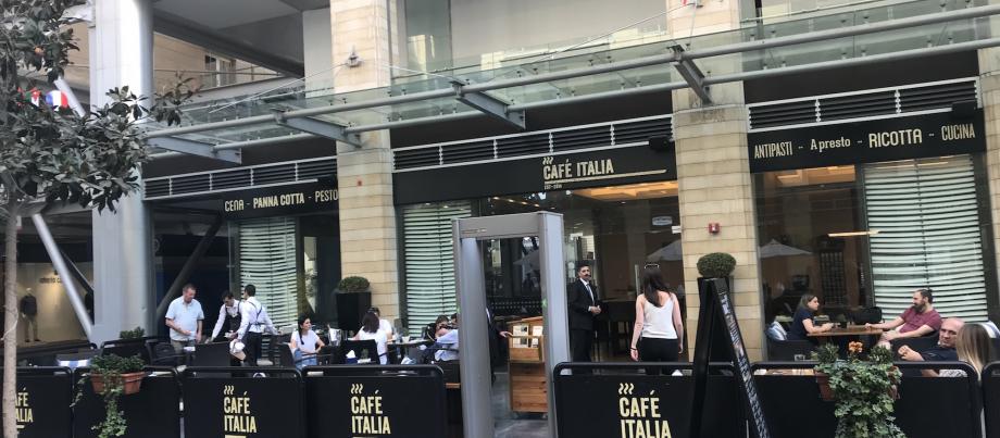 - كوفي شوب، كافيه يحتوي على تراس (قعدة) خارجي