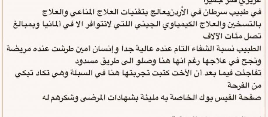 السلام عليكم امي مريضة سرطان هل يمكنني التواصل معكم