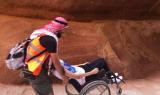 I met with the group at the Petra Visitor Center were arrangements were made to facilitate the trip. I was happy to learn that the museum on the site was wheelchair accessible and the Visitor Center had several accessible bathrooms available, which is something not very common in Jordan. To reach the treasury, participants were given the option of riding golf carts that would drive them through the Siq directly to the Treasury. Unfortunately, the golf carts are not wheelchair accessible and some of the participants needed to be carried on to them and have their wheelchairs stowed in the back of the cart.